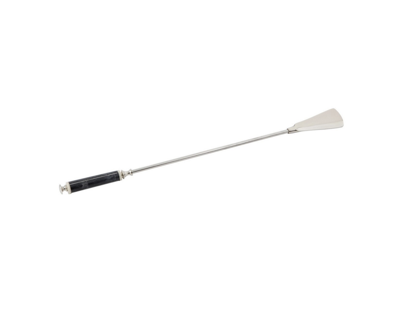 SMALL DÉCOR CAN REALLY ADD CHARACTER AND STYLE TO ANY SPACE. THIS DECORATIVE ALUMINIUM SHOEHORN W/ HORN & RESIN HANDLE IS MADE FOR LIGHT USE ONLY, THE UNIQUE DESIGN OF THIS SHOEHORN MAKES IT A CLASSIC