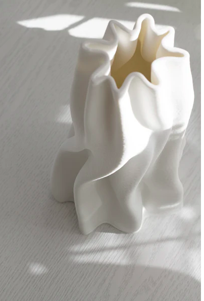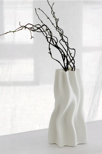 The Anouk White 3D Printed Ceramic Vase brings sculptural artistry into everyday spaces. With its striking wave-like silhouette and crisp matte finish, this vase adds movement and texture to any surface.