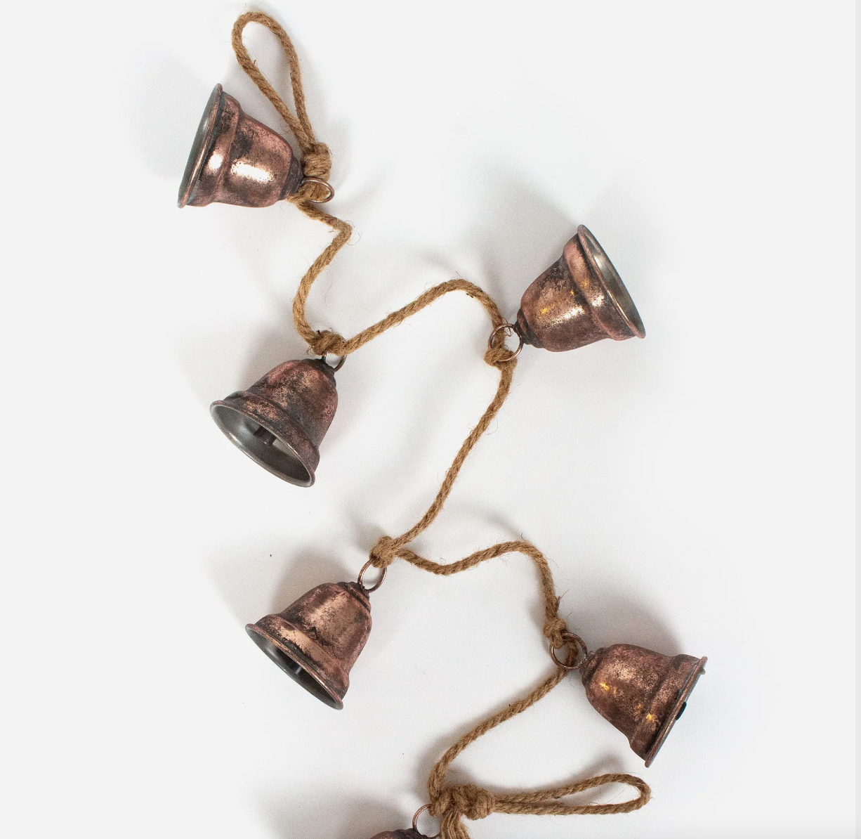 Festive rope strand with antique Bronze bells is perfect for wrapping around a foraged wreath or swag.