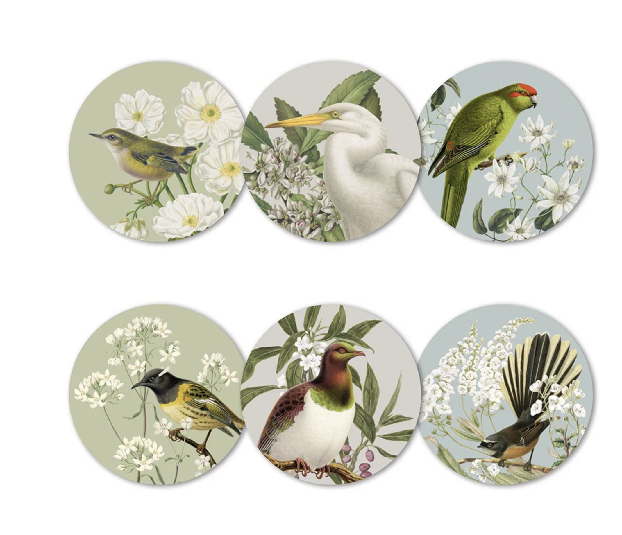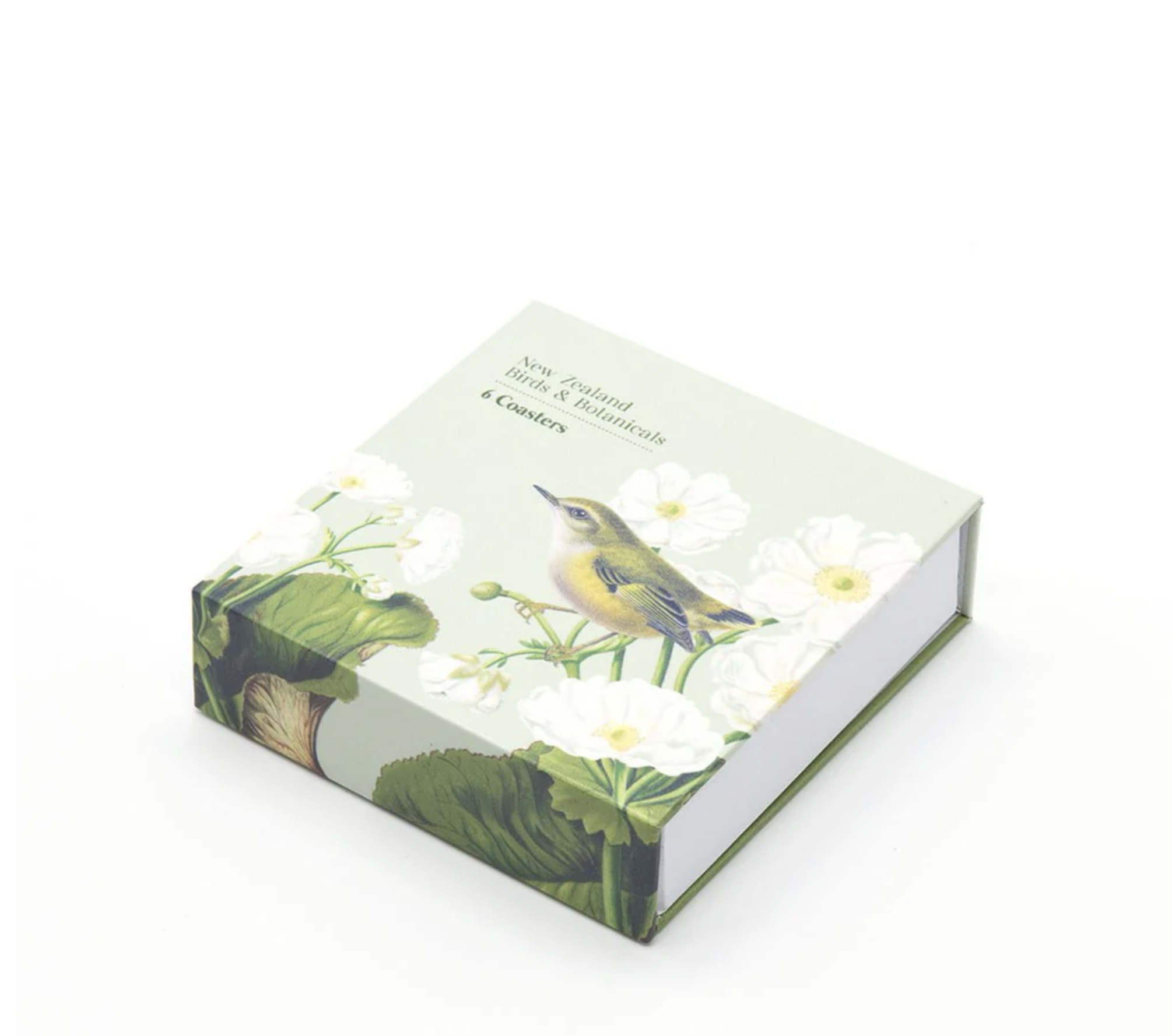 A stunning boxed set of 6 coasters featuring our unique Birds & Botanicals of New Zealand. Each coaster is different. Check out the matching placemats.