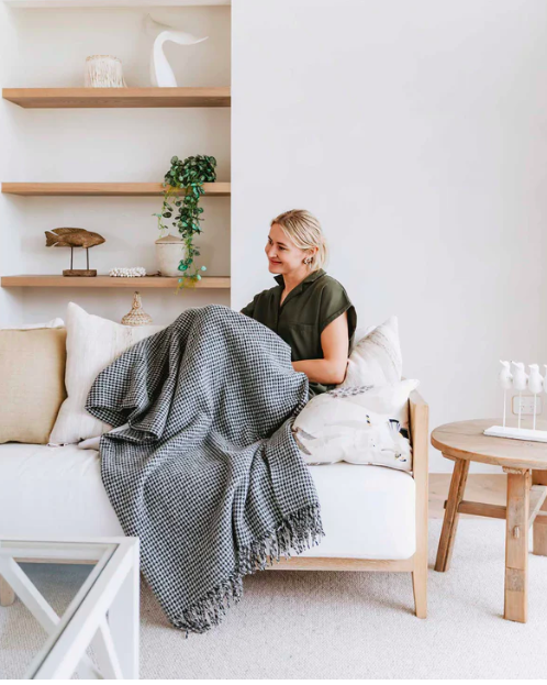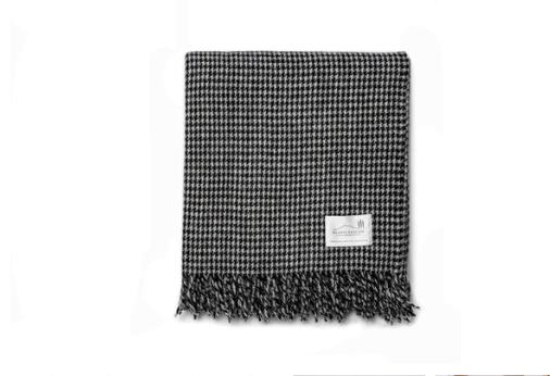 A stunning wool throw blanket of exceptional quality, woven in a traditional and sophisticated Houndstooth pattern. Perfect to give as a gift, to add a pop of colour to any room of the house, or to use as a snuggly travel rug for the car.
