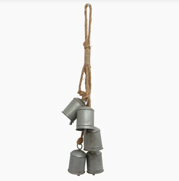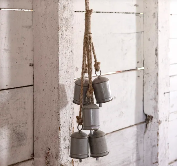 - Style Description: Add a rustic touch to your home this Christmas with the Vintage Grey Cow Bells. Clustered together with rope, they’re perfect for hanging anywhere to create a charming, old-world feel. Also available in other sizes and styles.