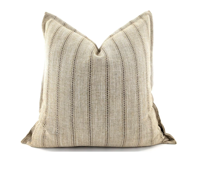 Description: SNUGG & CO CUSHION COVER - INT EARTSTRIPED NATURAL CBM: 0.13 Size (LxWxH): 550x550 Feather inner