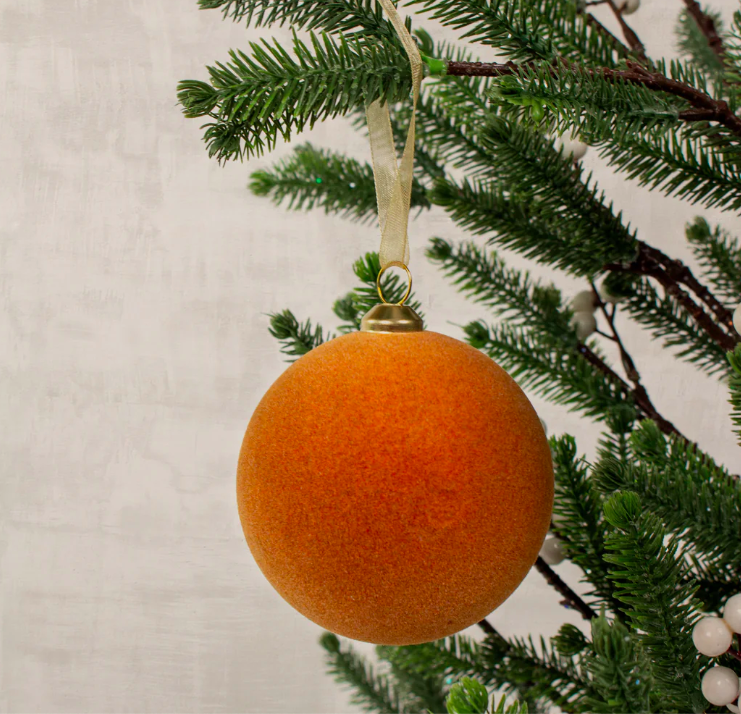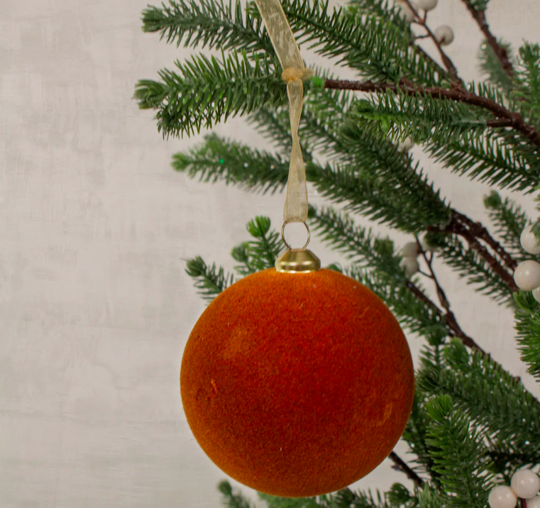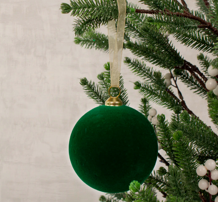 Our Flocked Bauble with a luxurious velvet finish is a stunning addition to your holiday decor. Available in three rich, deep colors, these baubles look great on your tree or festive displays.