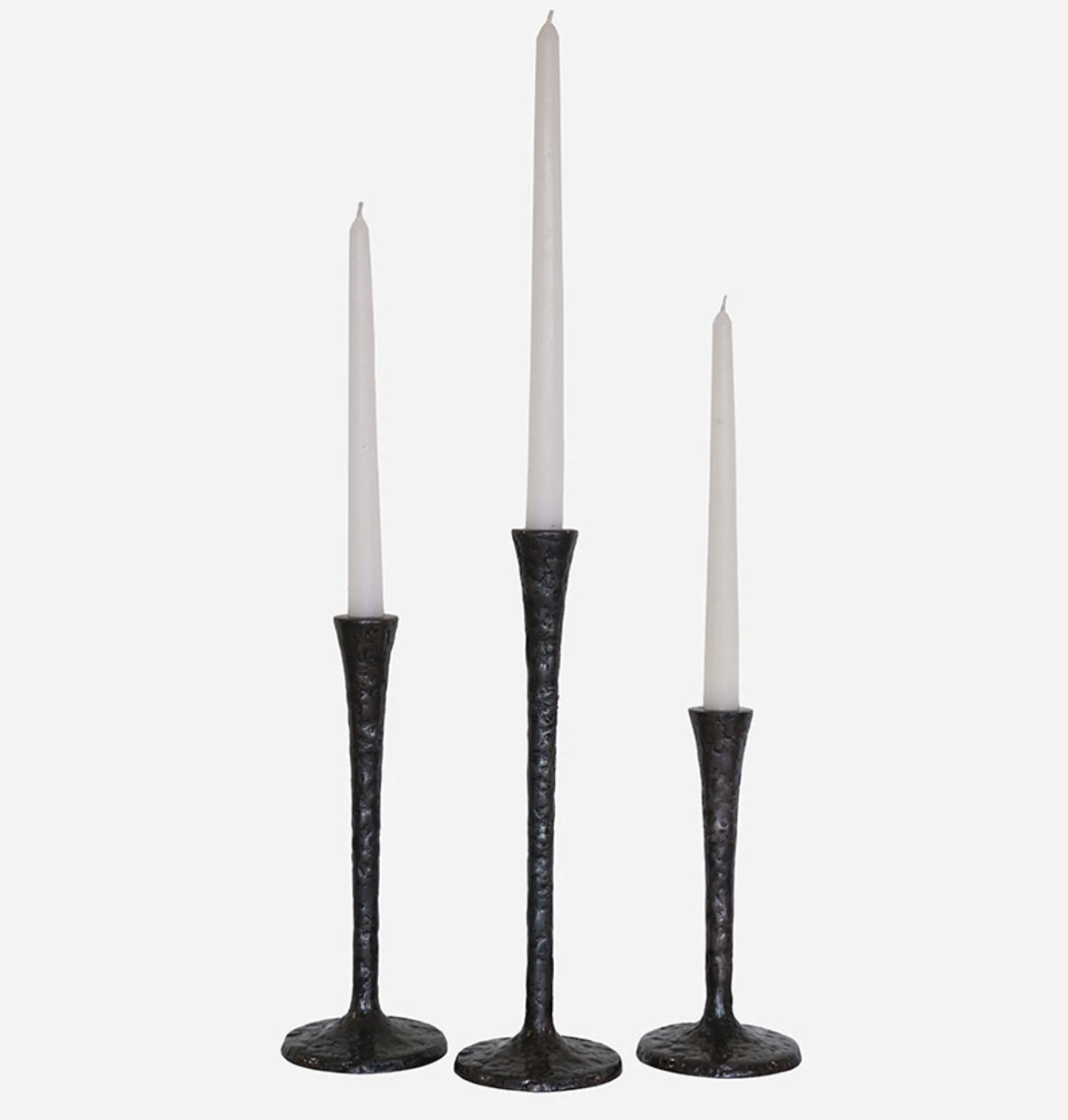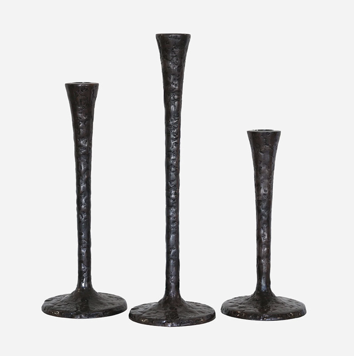 Forged Gothic Style Bronze Candlesticks Set of 3