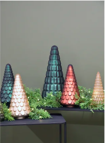 An opulent addition to your holiday decor that will transform any space into a Christmas wonderland. Crafted in lustrous metallic ruby red this Christmas tree is a symbol of timeless elegance and festive charm. Elevate the enchantment by placing fairy lights in side the tree. The dark red glass provides a beautiful tone, allowing the lights to create a warm glow - a magical ambiance that captures the spirit of the season. Whether placed on a dining table, mantel, or sideboard, this glass Christmas tree seamlessly integrates into various settings. Its versatility allows you to experiment with different decor arrangements, adding a touch of regal beauty to any room.