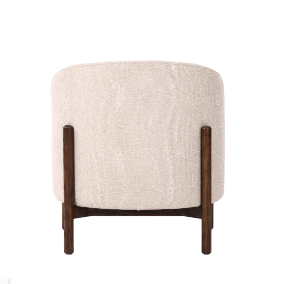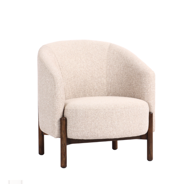 The Huston Tub Chair combines comfort with timeless style. Upholstered in soft cream polyester and supported by sturdy oak wood legs, it features a gently curved silhouette that embraces the sitter. Perfect for a reading nook, bedroom corner, or relaxed living space, this chair adds warmth and elegance wherever it's placed.