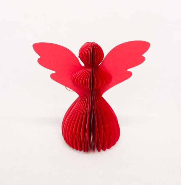 Delicate and charming, the 12cm Le Papier Angel brings a soft touch of tradition to your tree or tabletop. Crafted from recyclable paper with a fold-out silhouette and gold string for hanging.