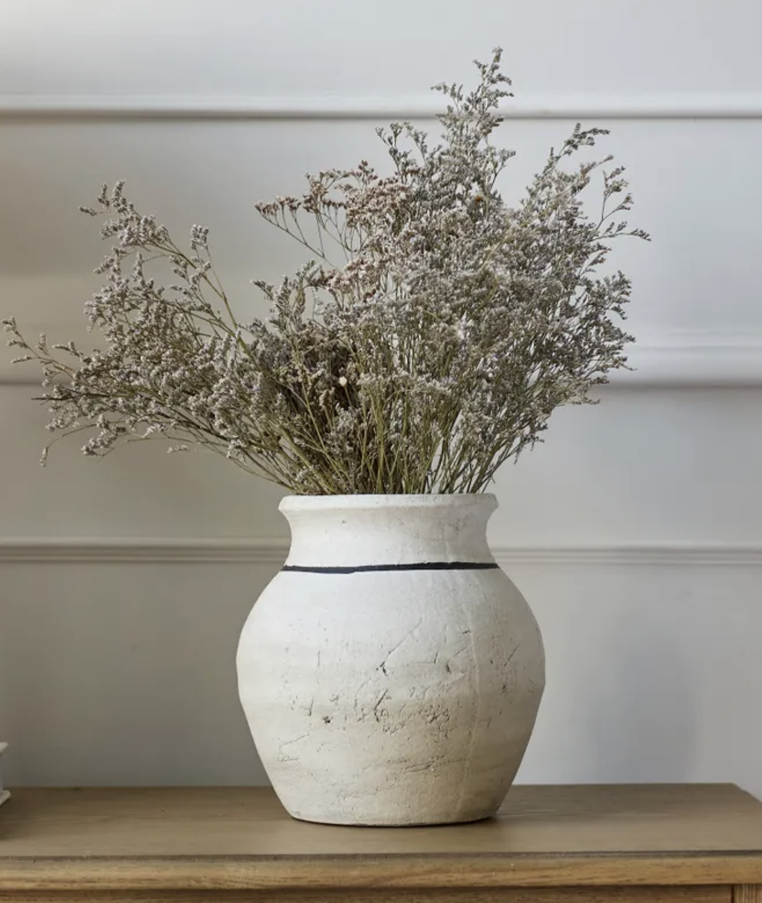 - Style Description: The Lisbon collection is a primitive style ceramic made from terracotta. Each piece has a chalky white finish adorned with imperfect black line detailing that makes each piece unique.
