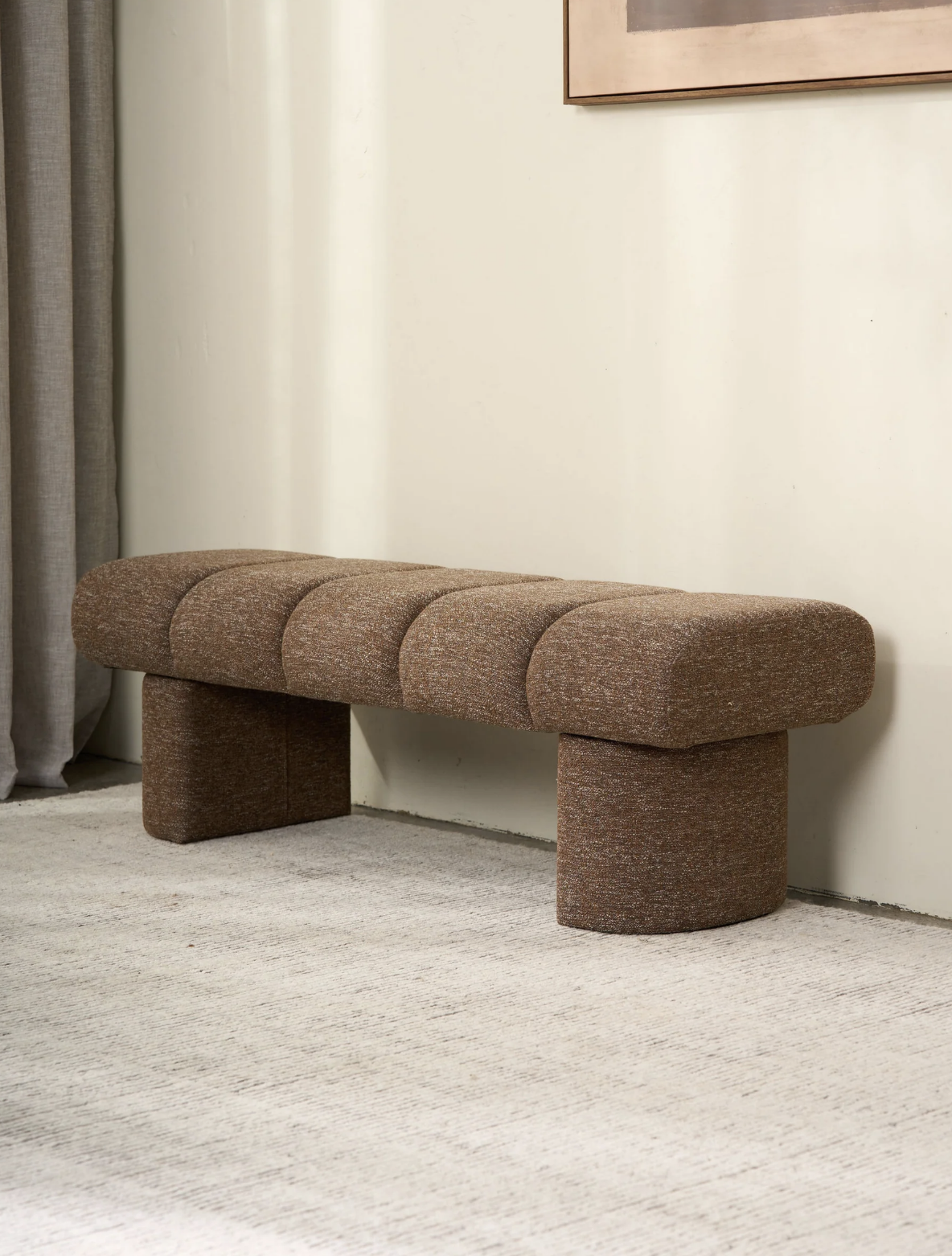 Rounded, restful, and refined, the Lune Bench pairs a channel-padded seat with pill-shaped legs to create a softly sculptural profile.