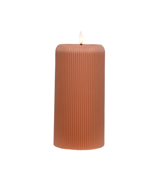 Medium LED Ribbed Pillar Candle – Lt Brown