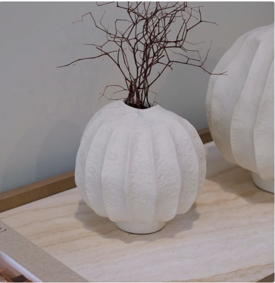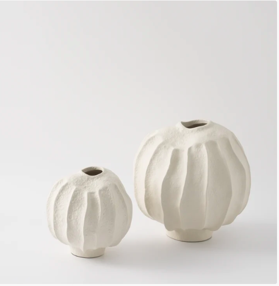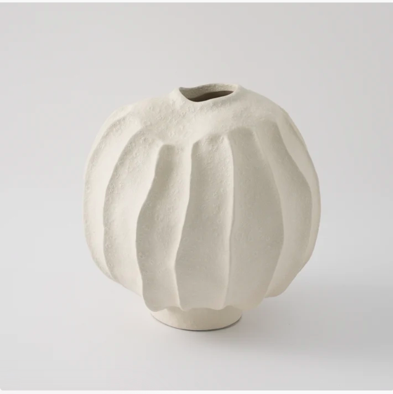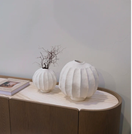 The Muri Vase features soft, sculptural curves and a textural surface that adds natural character. Handcrafted with a matte off-white finish, these vases make a beautiful statement on their own or styled together.