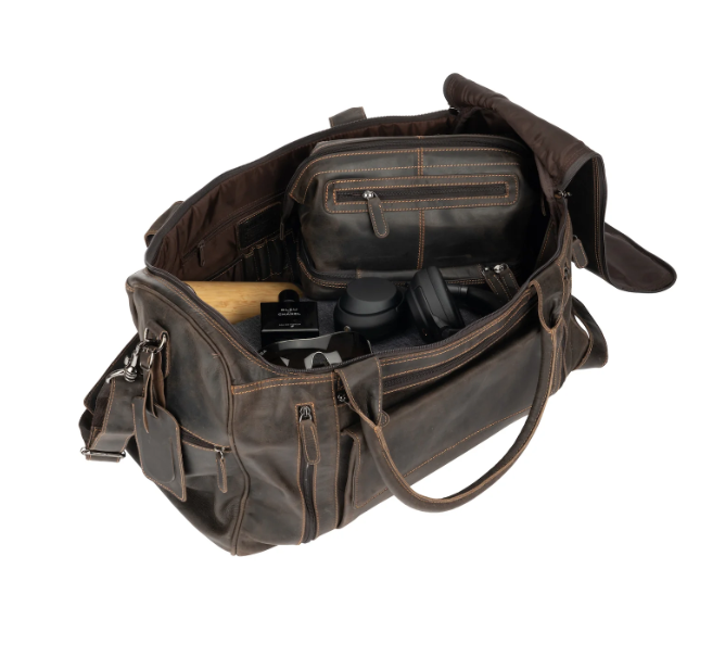 The natural cowhide gives the Greenwood travel bag a particularly interesting used look. The very comfortable strap on the bag make the bag look really cool on the wearer. The shoulder strap can be removed as desired, but the integrated padding means that somewhat heavy contents can also be carried easily and comfortably. You can also find suitable matching leather toiletry bag in our shop.