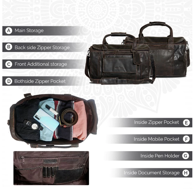 This Greenwood travel bag made of leatheris particularly characterized by the very large main compartment. There is enough space for all the many things that women or men need. This model from the Greenwood Leather is also very popular as a sports bag because of the large capacity or as a weekender for a short holiday in between. In addition, a front compartment and other zipped pockets for important items such as a wallet or ID card case on this Greenwood bag offer even more options for a large amount of storage space. This Greenwood Leather bag is made of natural leather and is characterized by a long service life and robustness.
