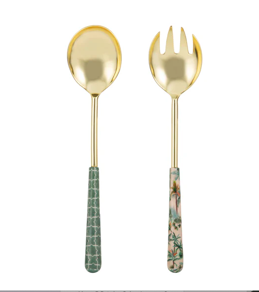 The Panama range features an in-house palm print across mango wood serveware, placemats, trays, and resin-handled utensils. Scalloped resin bowls and coasters come in four coordinated colours. Perfect for mixing, matching, and adding a tropical feel to your table or bar setup. Hand Wash only