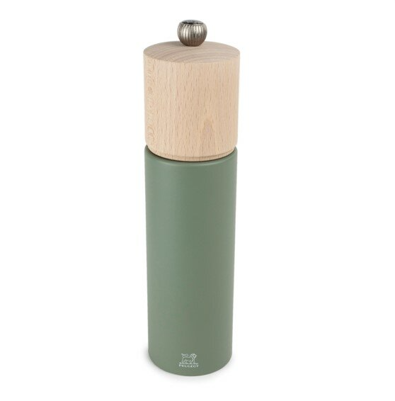 Soft and natural are the first impressions elicited by this pepper mill. The grain of the wood and the green finish, which conjures up images of shady forest undergrowth concealed by fern leaves, brings a fresh and soft touch. Its profile is streamlined and unpretentious. This mill is equipped with Peugeot's steel pepper mechanism. The grind setting can be adjusted to suit everyone's taste by tightening or loosening the button on top of the mill.