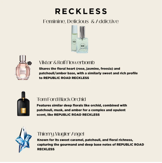 Your journey is filled with moments of fun and excitement, & our Reckless fragrance captures this perfectly.