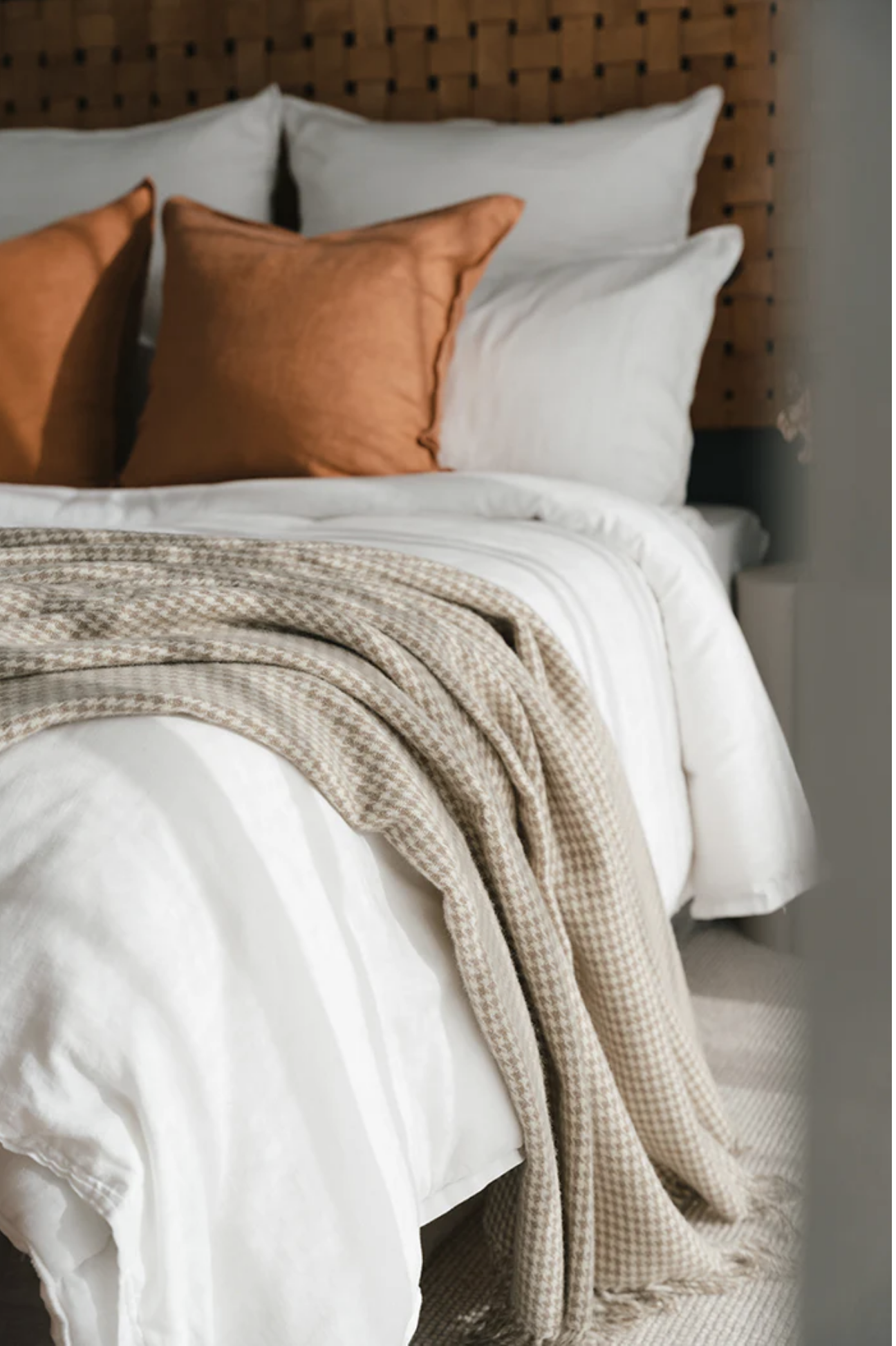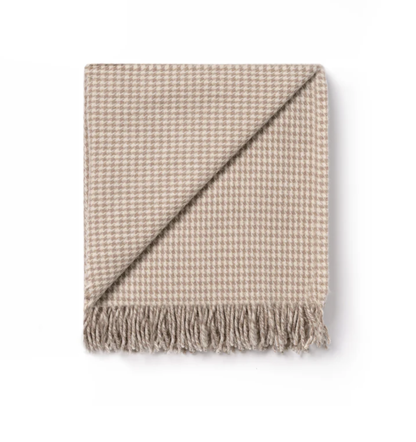 A stunning wool throw blanket of exceptional quality, woven in a traditional and sophisticated Houndstooth pattern. Perfect to give as a gift, to add a pop of colour to any room of the house, or to use as a snuggly travel rug for the car.