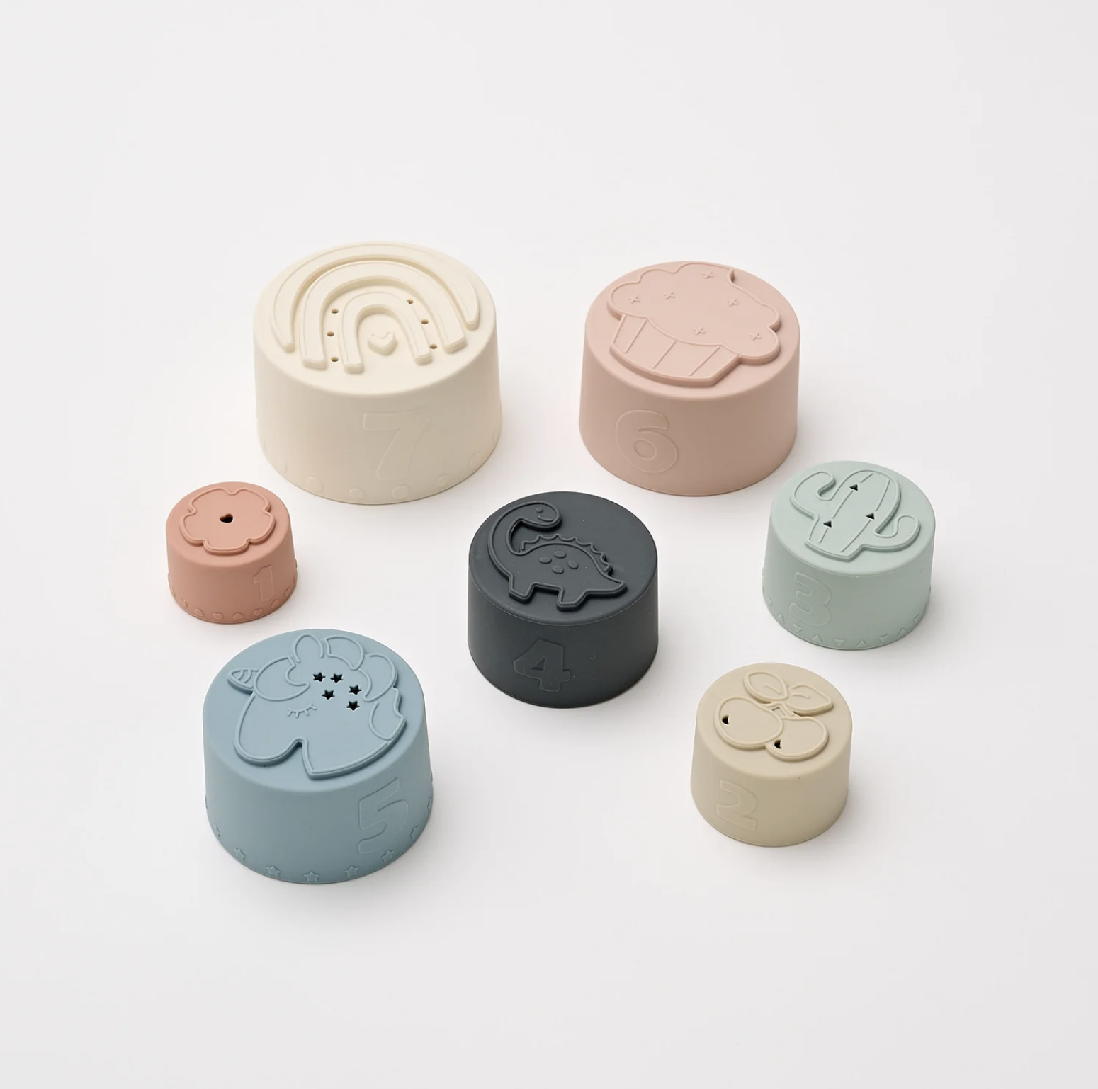 These fun and colourful stacking cups are made from a beautifully soft non-toxic silicone. Stacking and grasping the cups helps to develop fine motor skills. The different sizes, textures and colours engage the senses.