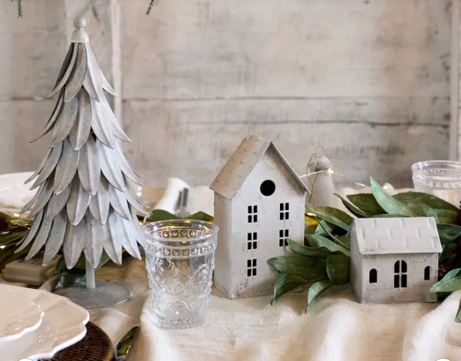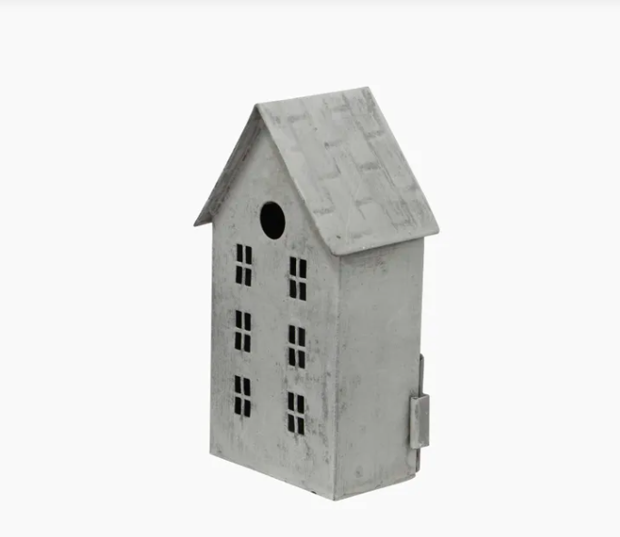 - Style Description: This Tall Zinc Tealight House adds a warm glow to your Christmas display with a light grey modern-Scandi charm. Simply place a tealight candle inside and enjoy the subtle flicker of light.