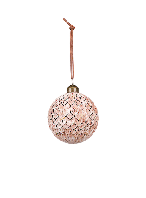 Tessellated Pattern Glass Bauble Brown/Gold 8cm