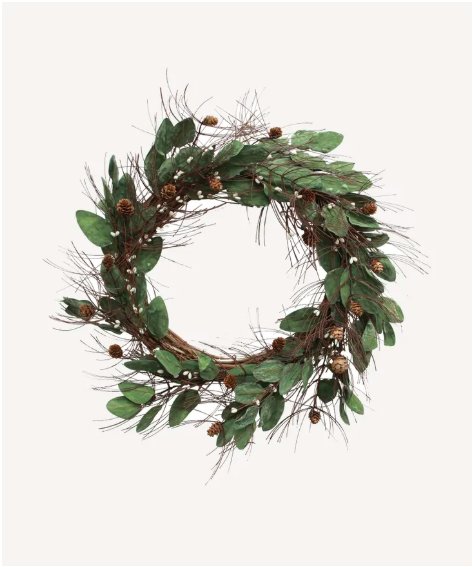 - Style Description: Festive branch wreath adorned with pinecone and needle detailing, along with delicate white berry flowers, serves as a warm and inviting decoration for your front door, creating a welcoming atmosphere for guests during the festive season.