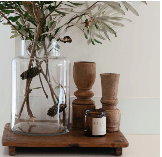 Introducing the Vintage Wood Riser – Crafted from vintage reclaimed wood, this versatile piece is ideal for showcasing kitchen essentials like olive oils, cooking vinegars, and salt + pepper. Its charm extends beyond the kitchen, doubling as a striking centerpiece in the bathroom. There, it can elegantly display soap bottles, candles, or other decor accents, adding a touch of rustic beauty to any space. Place in your living areas on sideboards or consoles to style your favourite decor pieces. The possibilities are endless.